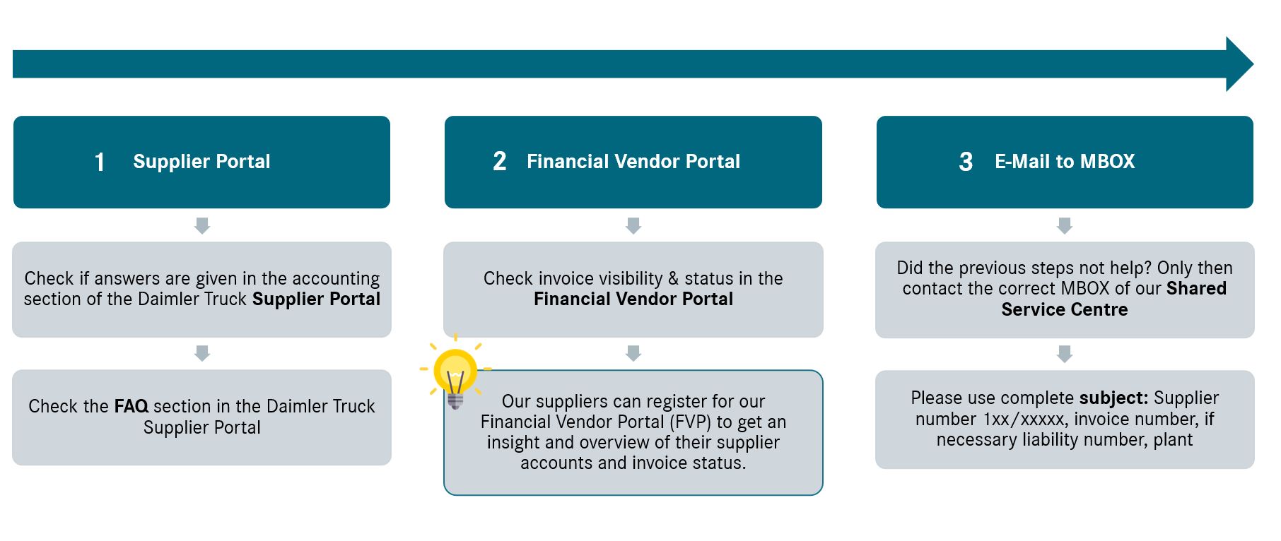 Alternatively, you can reach out to our accounting contacts: Contacts | Daimler Truck Supplier Portal